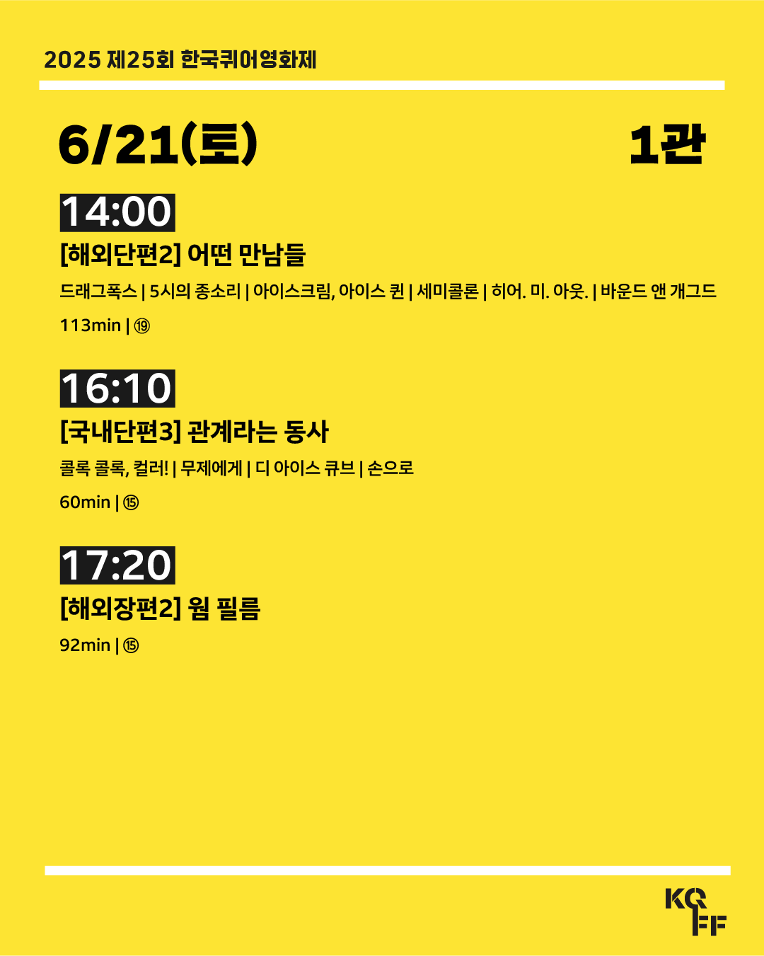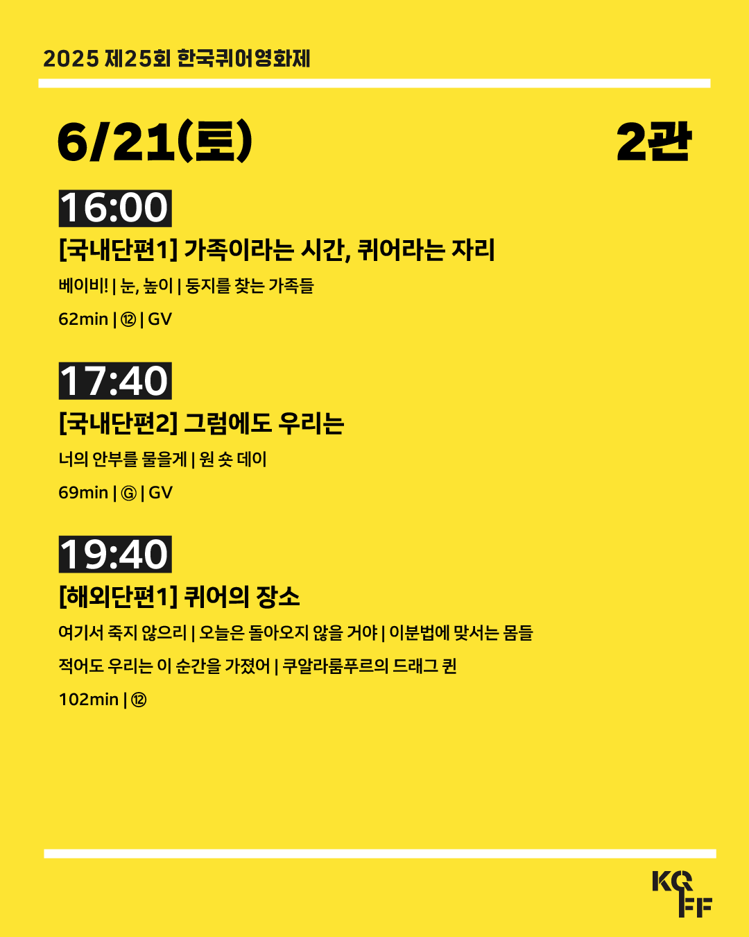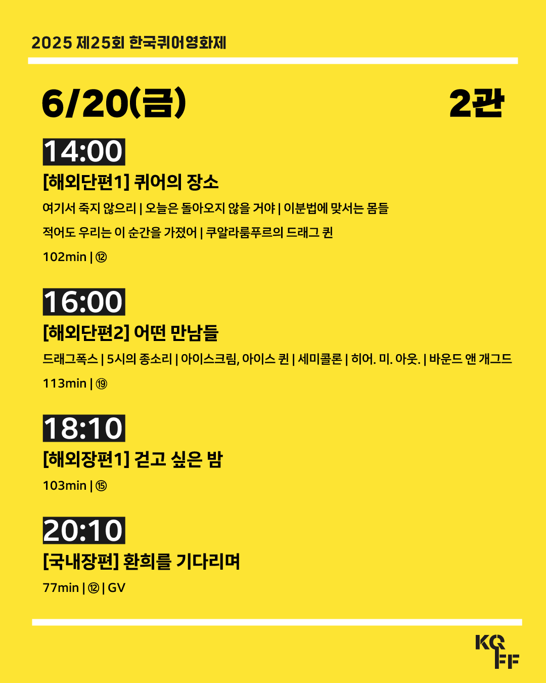 ๐ ์์์ผ์ ํ ์น์ฌ์ดํธ์์ ๋ณด๊ธฐ: https://www.kqff.co.kr/2025_timetable