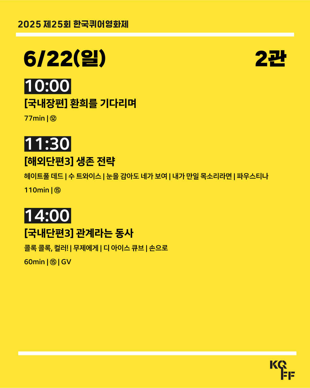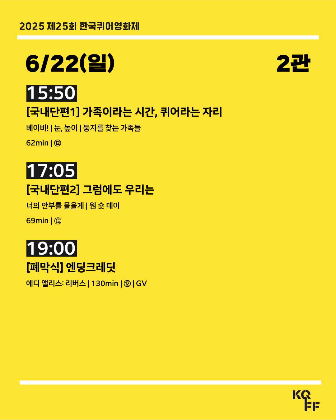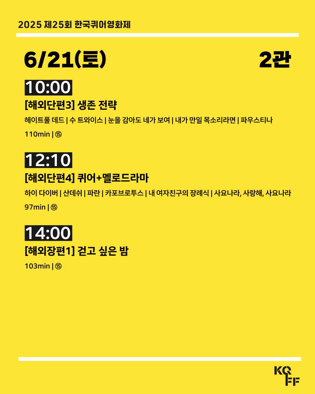 ๐ ์์์ผ์ ํ ์น์ฌ์ดํธ์์ ๋ณด๊ธฐ: https://www.kqff.co.kr/2025_timetable